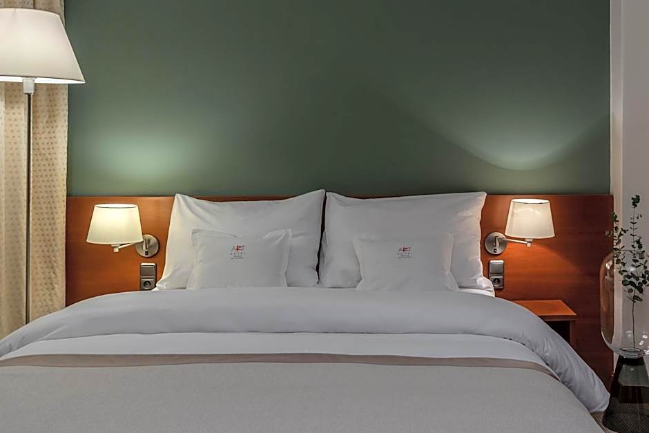 Double rooms with large double beds overlook the green garden or the quiet street. The walls of the rooms are decorated with works by famous Czech artists.